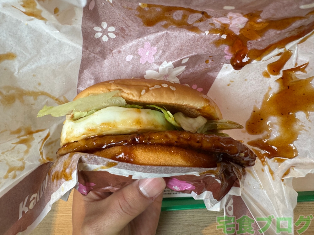 てりたまは、てりやきソースの甘さとたまごのまろやかさで、意外とスッと食べられます。